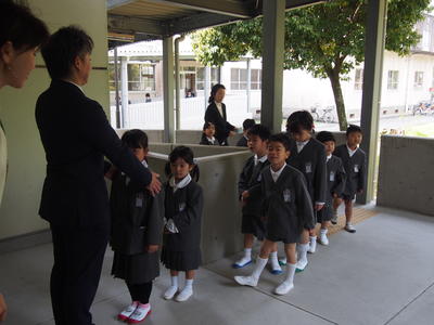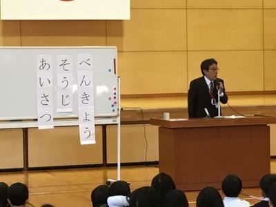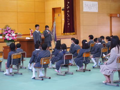6年生の保健委員さんが前に出て、身体計測の注意事項などを説明しました。