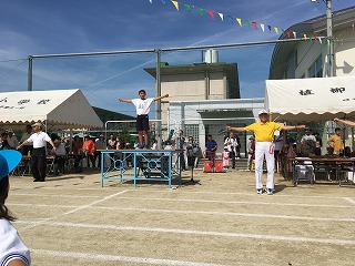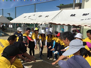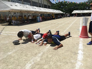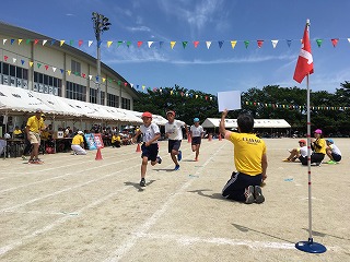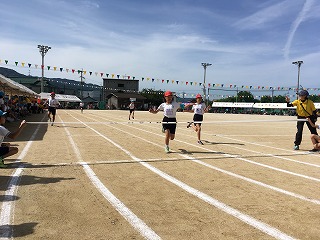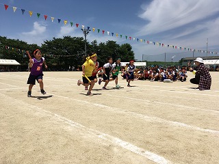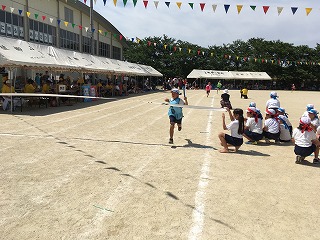 | ☆平成30年5月28日(月) 〇最高の運動会でした④ ・運動会、午後の部の様子です。 プログラム⑯ 【町内対抗リレー】 プログラム⑰ 【青団の応援】 【赤団の応援】 【両団で植柳、熊本、日本にエール!】 プログラム⑱ プログラム⑲ 【6年生親子競技】 ・「親子で力を合わせてゴーゴーゴー!」 ・親子で仲良く、二人三脚のリレーをしました。 プログラム⑳ 【5年生リレー】 プログラム㉑ 【1年生;親子競技】 ・「力を合わせてゴールをめざせ」 ・おうちの人といっしょに力を合わせてがんばりました。 プログラム㉒ 【6年生リレー】 ・先生チームも参加。6年生は速かったです。子供たちに負けました…。 プログラム㉓ 【2年生リレー】 ・2年生からリレー競技があります。初めてのリレー、バトンがうまくつながりました。 プログラム㉔ 【4年生リレー】 プログラム㉕ 【高学年;組体操】 ・「THE組体操2018『夢』」5,6年生97名で演技しました。 【高学年;組体操】 ・友達と息を合わせて、きれいに技を決めました。 【高学年;組体操】 ・校長先生も飛び入り参加。6年担任も一緒に土台になり、バッチリきまりました。 【高学年;組体操】 ・お世話になった方々に感謝の気持ちを伝えました。 |