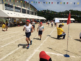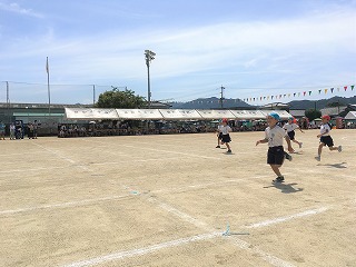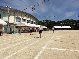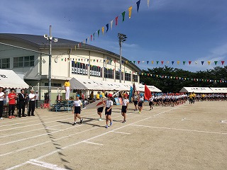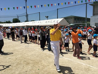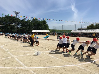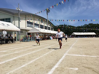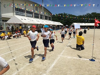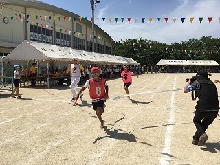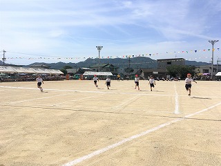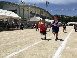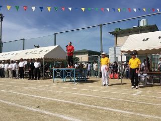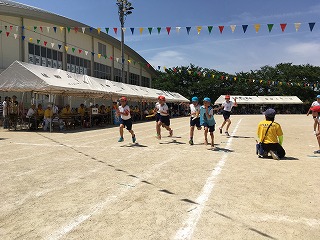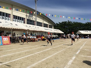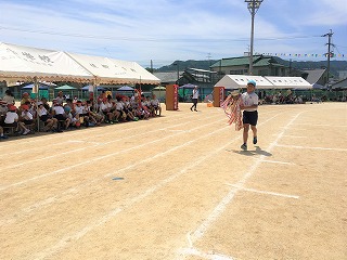 | ☆平成30年5月28日(月) 〇最高の運動会でした② ・運動会、午前の部です。プログラム順に紹介します。 ★運動会前★ 【植柳小の運動場;8時10分頃】 ・快晴。運動会日和でした。 【体育倉庫;運動会スローガンを掲示】 ・「一致団結、勝利を笑顔で掴みとろう!」 【職員朝会】 ・チーム植柳として、気合いを入れました。 ★入場行進★ 【8時30分にスタート】 ★開会式★ 【開会のことば;1年生】 ・1年生矢野さん、米田さん、黒木さん、山本さん。 【校長あいさつ;久保校長】 ・「最高の運動会にしましょう!」 【PTA会長あいさつ;小川PTA会長】 ・「頑張っている仲間を、精一杯応援してください。」 【児童代表あいさつ】 ・運営委員会の6年米田さん。 【運動会の歌】 ・植柳小伝統の運動会の歌を歌いました。指揮は放送委員会6年黒木さん。 【誓いのことば】 ・青団団長吉田さん、赤団団長岩本さんが、元気に誓いの言葉を言いました。 【ラジオ体操】 ・指令台は、体育委員会の6年桑田さん。 プログラム① 【5年生140m走】 プログラム② 【3年生100m走】 プログラム③ 【1年生80m走】 プログラム④ 【高学年;スーパー綱引き】 ・赤団が2勝でした。 プログラム⑤ 【4年生;120m走】 プログラム⑥ 【6年生;140m走】 プログラム⑦ 【2年生;80m走】 プログラム⑧ 【5年生;第58回浅野旗レース】 ・5年生全員が800m走に出場しました。 【浅野旗レース;ウイニングラン】 ・5年生の橋本さんが優勝でした。 |