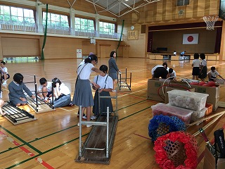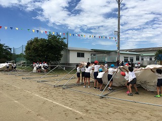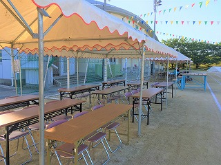 | ☆平成30年5月26日(土) 〇運動会、最後の練習をしました ・午前中は雨。最後の練習は、体育館でしました。 【低学年】 ・プログラム12番(1,2年生) ・「OH! GAME」 ・ボールを使った楽しいダンスです。 【中学年】 ・プログラム9番(3,4年生) ・「いずかしエイサー(島唄)」 ・ばちで太鼓を叩き、軽やかにおどります。 【高学年】 ・プログラム25番(ラスト)(5,6年生) ・「THE 組体操 2018『夢』」 ・静と動、息の合ったなめらかな動きと力強い動きのハーモニーをご覧ください。 〇運動会の準備をしました ・4時間目は、全校で掃除や準備をしました。 ・5,6年生はお弁当を食べて、運動場の準備をしました。 【テント張り】 ・午前中の雨が嘘のように晴れ渡りました。おかげで準備ができました。 【テントのひも結び】 ・高いところは、肩車をしてひもを結んでいました。組体操で学んだ技が活用できました。 【机と椅子を並べました】 ・テントができた後に、机と椅子を運び、きれいに並べました。 【係の打ち合わせ】 ・決勝係の担当の先生から話がありました。 【準備終了!】 ・1時過ぎから始めて、2時45分頃に終わりました。約1時間半の作業でした。自主的に、自覚をもって、準備してくれました。さすが植柳小の高学年です。 【準備万端!】 ・入場行進は、8時30分からです。終了は、午後3時30分頃を予定しています。 ・たくさんの方のご参加、お待ちしております。 |