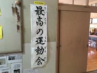 | ☆平成30年5月27日(日) 〇運動会です! ・すばらしい天気になりました。運動会は予定で通りに行います。 【絶好のコンディション】 【準備はバッチリです】 【1年2組教室】 【校長室横の掲示】 ・「最高の運動会」にしましょう! |