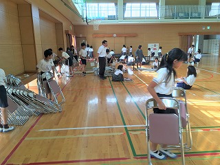 | ☆平成30年6月20日(水) ・校内研修で、①AEDを使った心肺蘇生法、②食物アレルギーに対する対処法、③水泳指導中の緊急対応を行いました。 【体育館;養護教諭の説明】 ・AEDを使った心肺蘇生法の説明がありました。 【心肺蘇生法の実技】 ・3つのグループに分かれ、実技を行いました。 〇伝統文化教室で遊びました(5年生) ・校舎東棟3階に伝統文化教室があります。今日の昼休みは、5年生が昔遊びに親しみました。 【伝統文化教室の様子】 ・お手玉やけん玉、百人一首など、子供たちが自由に遊べる教室です。 【けん玉】 ・真剣にけん玉をしていました。うまく中皿に乗りましたね。 ・みんなで仲良く「坊主めくり」をしていました。 |