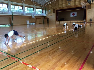 | ☆平成30年5月30日(水) 〇スポーツテストがありました ・今日から3日間、スポーツテストを実施します。運動場の種目は、50m走とソフトボール投げでした。 【50m走】 ・2年生と5年生が実施しました。グループを作り、5年生が2年生のお世話をしました。 【ソフトボール投げ】 ・「38m!」野球部の5年生は、遠くまで投げていました。 【反復横跳び】 ・体育館では、反復横跳び、長座体前屈、立ち幅跳び、シャトルラン、上体起こしの5種目しました。 【立ち幅跳び】 ・膝を曲げて、思いっきり跳びました。 ★明日は、3,4年生がスポーツテストをします。みんな頑張りましょう。 〇「植柳学」が始まりました(3年生) ・総合的な学習の時間、3年生は、植柳について学習します。主に、植柳小学校の歴史です。今日は、旧講堂について学びました。 【音楽室;「旧講堂」】 ・文化振興課の米崎さんに、旧講堂について話していただきました。 【旧講堂の中】 ・安全のため、ヘルメットを着用。子供たちは初めて中に入りました。 ・♪ポロロン、ときれいな音が鳴りました。盆踊り保存会の野﨑先生が、小学生のころ弾いたピアノだそうです。多くの卒業生が、このピアノの音色を聞いて、小学校生活を過ごしたのでしょうね。 【迫力ある鷲の置物】 ・「すごい!」と、子供たちが見入っていました。 【窓から見える朱橋】 ★次回の「植柳学」は、旧講堂で小学校時代を過ごした方々のお話を聞きます。どんな歴史、どんな思い出あるのでしょうね。とても楽しみです。 〇自転車大会の練習が始まりました!(6年生) ・6月9日(土)、市総合体育館で「第40回交通安全子ども自転車大会八代地区大会」が行われます。 ・6年生7名が自転車大会に向けて、練習に取り組みました。 【朝早くから練習】 ・交通安全協会の方が5名、本校職員が3名、指導しました。とても朝早い中でしたが、子供たちは熱心に練習に取り組んでいました。がんばれ!植柳小! |