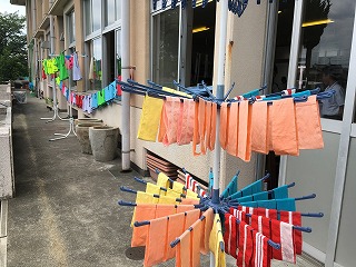 | ☆平成30年5月29日(火) 〇運動会の片付けをしました ・1時間目、全校で運動会の片付けをしました。 【体育館】 ・6年生が、長机やパイプ椅子の脚を、ぞうきんできれいに拭きました。 【体育館】 ・6年生が椅子や長机の片付けもしてくれました。 【運動場】 ・5年生は、運動会で使ったポイント(紐付き釘)を抜きました。 【体育館】 ・2年生は、ダンスで使ったボールを、きれいに拭きました。 【運動場の周辺】 ・3年生は運動場のゴミ拾いをしました。 【運動場の周辺】 ・1年生もゴミ拾いをしました。 【体育館】 ・片付けの仕上げは雑巾がけ。6年生が、一生懸命拭いてくれました。 【家庭科室】 ・家庭科の授業で、5年生が、ビブスや鉢巻き、腕章などを洗って干しました。 ★1時間の片付けでしたが、全校で協力して取り組めました。 ★明日から、スポーツテストが始まります。ゆっくりと休養をとり、自分の力が十分発揮できるといいです。 |