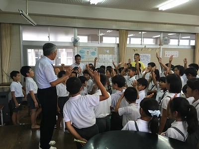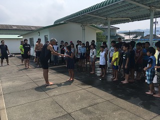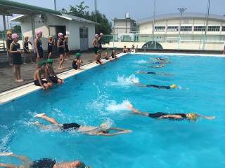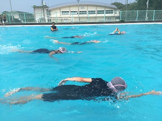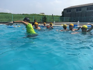 | ☆7月16日(日) ○校長先生が水泳指導 ・今年度も、校長先生が水泳指導の補助をしてくださっています。 【3年生;背浮きの指導】 【4年生;息継ぎの指導】 ↓↓↓↓↓↓ 【4年生;息継ぎの模範をされる校長先生】 【5年生;グループでの練習】 ・水泳の授業はもちろん担任が進めますが、校長先生が補助的にポイントやコツを教えて下さいます。 ・複数体制で授業ができますので、児童の泳力も身についてきています。 ★夏休み水泳教室…21日(金)、24日(月)、27日(木) |