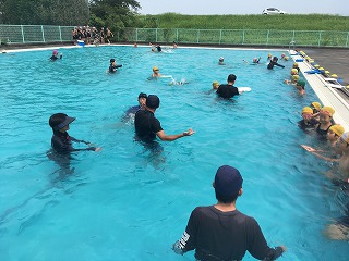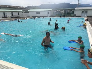 | ☆7月21日(金) ○水泳教室がありました(初日) ・夏休みを利用し、水泳の力をつけるための教室をしました。 【水泳教室参加者】 ・対象は4年生以上。25m泳げない、息継ぎがうまくできない子どもたち49名が参加しました。 【水慣れをする子どもたち】 ・初日は、部活の試合や体調不良で34名の参加でした。 【初めに泳力を測りました】 ・泳力で、4つのグループに分かれました。 【指導を受ける子どもたち】 ・水泳教室には15名の先生が指導にあたりました。 【校長先生も指導】 ・うまく息継ぎができない子どもたちに、簡単な仕方を教えてくださいました。 【最後に泳力を測りました】 ・34名中、初めの調査よりも長く泳げるようになった子が30名でした。 ・25mが泳げるようになった児童が6名、50mが6名いました。 【みんな頑張った水泳教室(初日)】 ・4年生の男の子は、「人生の中で初めて50mが泳げました!」と、とても喜んでいました。 ・水泳教室はあと2日間ですが、多くの子どもたちの泳力が伸び、嬉しいコメントがたくさん聞かれるように頑張っていきます。 |