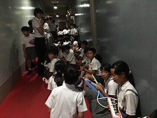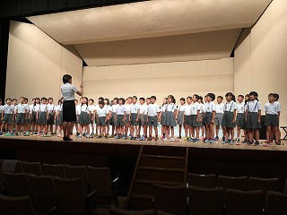 | ☆7月25日(火) ○音楽会のリハーサルがありました(4年生) ・明日26日(水)が音楽会です。厚生会館で歌ったり、立ち位置を確認したりしました。 【合唱♪「夢日和(ゆめびより)」】 ・4年生55名で歌いました。指揮は2組担任の西村先生です。 【合奏♪「チキチキバンバン」】 ・リズムがよく、楽しくなる曲です。演奏時間が短いですので、しっかりと聴いてください。 ★リハーサルのそのほかにも大切なことが・・・ 【厚生会館で待つ子どもたち】 ・タクシー5台(4人乗車)×3回=60。3グループに分かれ、ピストン輸送で厚生会館へ行きました。 ・誰と乗るのか確認。乗るときのマナーも勉強です。 【公共のマナーについて話を聞く子どもたち】 ・発表も聴く態度も真剣に。 ・会場では飲食禁止です。 【座先の確認】 ・植柳小の席は後方真ん中です。その後ろが保護者席です。 【本番に向けた話】 ・名札、帽子、白い靴下を忘れずに。 ・音楽室の集合は7時15分です。7時10分までには学校に着くように。朝が早いので、気をつけた登校しましょう。 |