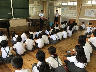| ☆7月20日(木) ○一学期の終業式がありました ・体育館が工事中のため、校内放送で始業式をしました。 【校内放送で話を聞く2年生】 ・各教室に大型テレビがあります。いつもと違った始業式でした。 【校長先生のお話】 ・「勉強やお手伝いなど、一つのことを決めて『続ける夏』にしましょう。そして、命やルールを『守る夏』にしましょう。」 【放送室がスタジオに】 ・ビデオカメラやスクリーンをセットして、簡易スタジオになりました。 【児童発表も校内放送で】 ・1年生から6年生まで各1名が、1学期に頑張ったことや夏休みに頑張ることを発表しました。 【発表を待つ児童】 ○楽しい夏休みにしましょう! ・終業式のあとは、大掃除や学活がありました。 【4年2組;帰りの会の様子】 ・担任の先生から「病気やケガ、事故などに気をつけ、楽しい夏休みにしましょう。」とお話がありました。 【下校する児童】 ・1学期は68日(6年生は69日)でした。そのうち全校児童265名が全員登校できた日は「5日」でした。 ・明日から42日間の夏休みが始まります。充実した夏休みにしてほしいです。 |