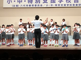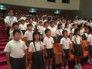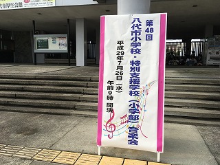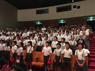 | ☆7月26日(水) ○音楽会がありました(4年生出場) ・昭和46年から続く、八代市の伝統ある音楽会です。 【厚生会館入り口】 【はじめの歌♪「うたえバンバン」】 ・みんなで歌いました。 【出番を待つ植柳小児童】 【9番目に発表 ♪「YUME日和」】 ・指揮者を見て、元気よく歌えました。 【心をこめて歌いました♪】 【合奏♪「チキチキバンバン】 【軽快なリズムの合奏でした♪】 【おわりのうた♪「ビリーブ」】 ★これまで励んできた練習の成果を精一杯出し切り、素晴らしい発表ができました。4年生の皆さん、素敵な発表をありがとう! |