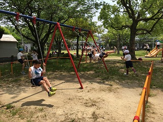 | ☆5月5日(金) ○お見知り遠足(5/2)がありました(遊び編) ・子どもたちの遊びの様子をお知らせします。 ★1,6年生(内膳児童公園) 【1・6年生①;お弁当の後は自由時間】 【1・6年生②;「何して遊ぼうか?」】 【1・6年生③;いるかのシーソーが大人気】 【1・6年生④;カバさんのスプリング遊具もあったよ】 【1・6年生⑤;校長先生と遊んだよ(十字架や相撲など)】 【1・6年生⑥;大きな土管も子どもたちの遊び場所でした】 ★2・5年生(植柳新町南児童公園) 【2・5年生①;緑がたくさんある公園でした】 【2・5年生②;広い草原を思いっきり走り回ったよ】 【2・5年生③;みんなで遊ぶと楽しいね】 【2・5年生④;5年生のお兄さん、お姉さんと仲良くなれましたね】 【2・5年生⑤;「先生、遊びましょう!」】 【2・5年生⑥;鬼ごっこ遊びが楽しかったね】 ★3・4年生(古城児童公園) 【3・4年生①;サッカーをして遊んだよ】 【3・4年生②;大人気のすべり台の遊具】 【3・4年生③;みんあで滑ってジェットコースターみたい】 【3・4年生④;夏のような暑さでした】 【3・4年生⑤;公園に子供のコウモリが!?】 【3・4年生⑥;大縄遊びもしました】 ★明日は「お見知り遠足(帰還・下校編)」の様子をお伝えします。 |