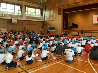 | ☆5月11日(木) ○芸術鑑賞会ワークショップがありました ・6月14日に芸術鑑賞会があります。その本番に向けた事前指導がありました。 ・名古屋の『志多ら(したら)』という和太鼓の団員の方が4名来校されました。 【体育館;ワークショップの様子】 【迫力ある和太鼓の演奏】 【4~6年生が参加】 ・当日は、和太鼓や笛の演奏に合わせて、子どもたちはうちわを持って踊ります。本番が楽しみですね。 ○八代亜紀さんが来校 【テレビのロケで植柳小を訪問された八代亜紀さん】 ・故郷を訪ねる番組制作のため、八代亜紀さんが来校されました。BS放送の番組だそうです。 【テレビカメラに夢中な2年生】 ・八代亜紀さんはいずかしの森や旧講堂周辺を散策されました。2年生が出迎え、本物の芸能人に出会えたことやテレビ局のカメラに映ることに大興奮でした。 ・詳しい放映日時が決まりましたら、HPでお知らせいたします。 ○3年生社会科「校区たんけんに行こう」 ・校区の土地の使われ方を調べに、南方面(大福寺)へ行きました。 【白地図を持って校外学習をする3年生】 【先生の説明を聞く3年生】 ・初めての実地学習でしたので、要所々で担任の先生が白地図への記入の仕方を説明しました。 【ばっちり調べました!】 ・来週は東コース、西コースへ探検に行きます。 ○八代地区特別支援学級「お見知りバス遠足」がありました ・植柳小、金剛小、高田小など12の小学校の児童150名ほどが参加し、天草の「シードーナツ水族館」へ行きました。 【シードーナツにて;植柳小あすなろ1組の児童】 【「アロマ体育館」にて名刺交換】 ・水族館見学の後は、お見知り集会があり、名刺交換やジャンケンゲームなどして、他校のお友達と仲良くなれました。 【大型バス4台で参加】 ・バス代や入場料は「手をつなぐ育成会」が寄付してくださっています。子どもたちのため、ありがとうございます。 ○応援団員の練習始まる! ・来週から始まる応援団の練習に向け、4時30分~5時30分まで話し合いや練習をしました。 【青団の応援団員】 ・団長の意気込み「今年も優勝5連覇めざします!」 【赤団の応援団員】 ・団長の意気込み「今年は赤団を優勝させるようにがんばります!」 ★お互いに全力を尽くし、青団、赤団のリーダーとして、運動会を盛り上げましょう!! |