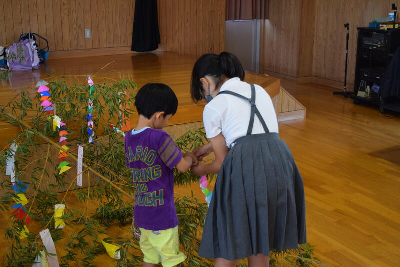 一緒に七夕かざりを作りました