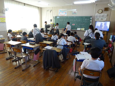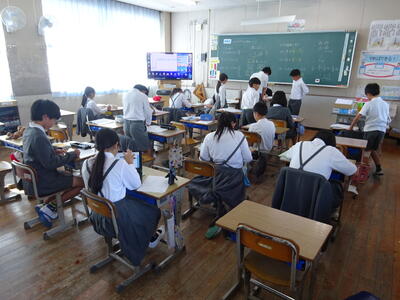 3年2組は算数で、いろいろな考えを出し合っていました。