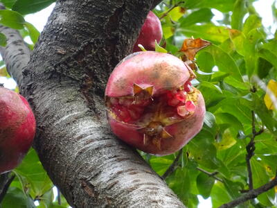 くれぐれも木に登ったり、ザクロの皮は食べませんように・・・。