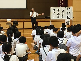 | ☆9月13日(水) ○着衣泳をしました(2年生) ・川や海に落ちたらうまく泳げるでしょうか?水着の上から服を着て泳いでみました。 【2年生;着衣泳の様子】 ・ペットボトルを胸に抱いて、浮いています。 【上手に浮かぶコツを解説】 【みんな上手に浮けました】 ・「らっこさんのようするといいよ」「空を見るといいよ」など、子どもたちはお互いに教え合って、上手に浮いていました。 ★水のシーズンは終わりますが、子どもたちにとって「命を守る」授業となりました。 ○植柳小あれこれカメラ 【1年生;生活科で虫取り】 ・「見て見て~!バッタ!」「カナヘビも捕まえたよ!」虫取りに夢中な女の子たちでした。 【3年生;社会科「買い物調べ」】 ・週末、買い物へ行ったお店を発表しました。第一位は「ゆめタウン」でした。 【2年生;生活科で砂遊び】 ・土の気持ちよさを手足で感じる授業。山やトンネルなど作って楽しそうでした。 【昼休み;ALTのジョー先生とドッジボール】 ・4年生と一緒にドッジボールを楽しみました。 【校内研修;伝統文化の講演】 ・熊本大学の安田先生(名誉教授)をお招きし、2回目の伝統文化のお話を聞きました。 ・植柳の盆踊りの由来や熊本の祭りの変遷などについてお話ししていただきました。遠路、ありがとうございました。 |