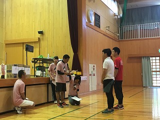 | ☆9月3日(日) ○ビーチバレー大会、健闘の3位! ・植柳小、麦島小、三中、植柳幼稚園、麦島幼稚園の3校2園の先生と保護者が集い、ビーチバレーをしました。 【麦島小体育館にて】 【植柳小PTAチーム】 ・楽しく和気あいあいと試合をすることができました。 【植柳小Cチームの試合開始!】 【表彰式】 ・植柳小学校Cチームは小川会長の足技や、上原先生の鋭いサーブなどの連携プレーで三位に輝きました。 ・校長先生率いる植柳小学校Aチームと教頭先生率いる植柳小学校Bチームは予選リーグで敗退。 【植柳小PTAチームで記念撮影】 ・結果です。 一位植柳幼稚園B 二位麦島小学校A 三位植柳小学校C ★ビーチバレーをとおして、楽しく幼保小中連携ができました。連携の輪もぐっと大きく広がりました。皆さん、お疲れ様でした。 |