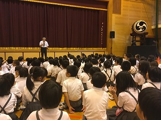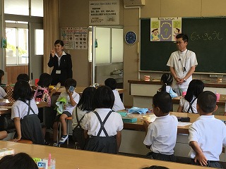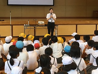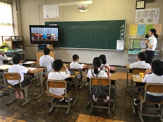 | ☆6月20日(火) 〇交通安全教室(2日目)がありました ・3,4年生の交通安全教室がありました。 ★2校時★(講話;3,4年生) 【3,4年生を対象とした交通安全についてのお話】 ・交通安全協会、植柳校区の指導員、市の担当の方など、たくさんの方に指導していただきました。 【「ルールをまもる」ことが「いのちをまもる」ことになります】 ・軽快な講話とユニークな手作り教材で、子どもたちにとてもわかりやすかったです。 【イラストを動かしながら、自転車の乗り方を確認】 ・「自転車はどこを走ったらいいですか?」 ★3校時★(実技;4年生対象) 【ヘルメットをかぶって自転車のコースで練習】 【自転車を倒したときの起こし方も練習しました】 ・うまく起こすコツがわかりました。 ★4校時(実技;3年生対象) 【道路に出るときは身を乗り出して安全確認】 【30mの直線を真っ直ぐ走り、ブレーキ!の練習】 ・3年生は運転にまだ慣れていない子が多く、ふらついたり、ブレーキがうまくかけられなかったりしました。 【お礼のことば】 ・交通安全協会、校区の指導員、市の担当の皆様、2日間、大変お世話になりました。 ・「命を守る」ため「ルールを守る」自転車の乗り方を実践します。 ・丁寧にご指導してくださり、ありがとうございました。 ◆午後から雨だったので…◆ 【自転車は体育館の軒下に保管】 ・雨のため、自転車を持って帰れなかったので、学校に置いています。屋根がある玄関の所です。天気の良い日に持って帰れたらと思います。 〇教育実習生の研究授業がありました ・3時間目、3年生教室で学級活動の授業をしました。 ・保健指導で「むし歯になりにくいおやつの選び方を知ろう」という学習内容でした。 【子どもたちのアンケートをもとに授業開始】 ・実際のおやつを子どもたちに見せると…「わー、本物だあ!」と、大きな歓声があがりました。すばらしい授業のスタートでした。 【班での話し合い活動の様子】 ・「歯につきやすいお菓子はどれかな?」子どもたちに考えさせる活動もありました。 【授業研究会】 ・放課後、研究授業について振り返りをしました。 ★子どもたちの興味を高める準備があり、楽しい授業でした。実習期間もあと3日。しっかりと勉強され、楽しい思い出もたくさんつくってください。 〇5年生のプール開きがありました ・6時間目、5年生のプール開きがありました。 ・小雨が降り寒かったのですが、5年生の熱いやる気で頑張りました。 〇雨の日はみんなで遊ぼう! ・先日代表委員会で決まった全員遊びをしました。 【じゃんけん列車をしました】 ・運営委員会の皆さん、楽しい企画をありがとうございました。 |