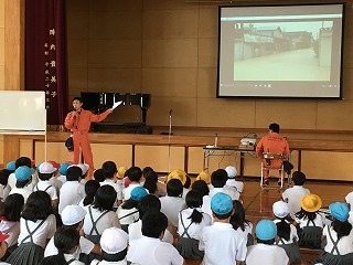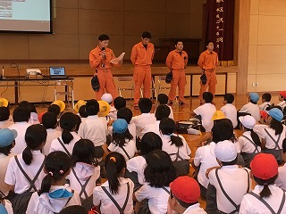 | ☆6月23日(金) 〇避難訓練がありました(水害) ・梅雨の季節です。大雨の水害を想定した避難訓練を行いました。 【下校の準備をして体育館へ集合】 【八代消防署から4名の方が指導に】 【動画を使って水害時の避難について講話】 【町内ごと、班になって下校しました】 【増水のおそれがある水路から離れて歩きました】 ★まだまだ雨の日が続きます。避難訓練で学んだことを生かし、安全な登下校をしましょう。 ★消防署の皆様、お忙しい中、ありがとうございました。 |