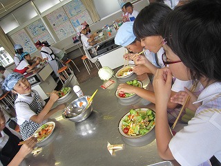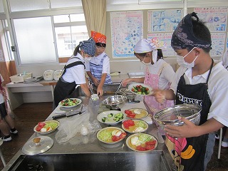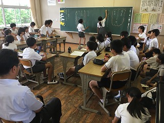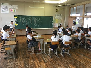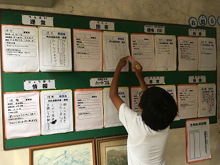 | ☆6月1日(木) 〇6月の委員会活動がありました ・5,6年生は、6校時に委員会活動に取り組みました。学校のため、いつもありがとう。 【環境ISO委員会】 ・チョークの粉や鉛筆の削りかすを入れる「リサイクル袋」を作りました。ゴミ箱で、粉やかすが飛び散らない工夫です。 【情報委員会】 ・放送の練習をしました。曲をかけながら、落ち着いてアナウンスしていました。 ★他にも6つの委員会があり、それぞれの活動に取り組んでいました。 【委員会からのお知らせ掲示板】 ・6月の活動内容やお知らせを書いた紙を貼りました。 〇クラブ活動でお世話になります ・伝統文化教育の研究指定を受け、クラブ活動に「茶道クラブ」ができました。 ・外部指導者の先生が二名来校され、打ち合わせをしました。これからお世話になります。 【茶道を教えてくださる先生と担当の先生】 【伝統文化教室】 ・まだ何もありませんが、空き教室を利用して、茶道など伝統文化に親しむ空間にしていきます。 |