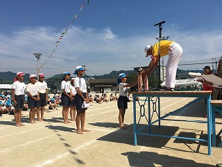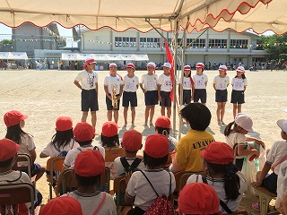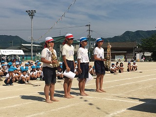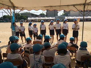 | ☆5月28日(日)② 〇全校児童265名、力を出し切った運動会! ・大会スローガンのように、みんな笑顔で、最後まであきらめず、一生懸命がんばりました。 ・赤団、青団それぞれが心を一つにして、やりきった素晴らしい運動会でした。 【閉会式;今年の優勝は青団でした】 ★運動会の詳しい様子は、明日の植柳小ホームページでお知らせします。 |