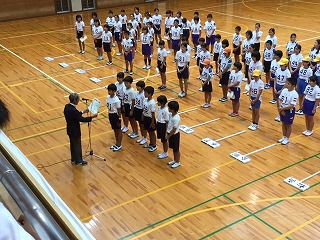 | ☆5月30(火) 〇子供自転車大会の練習が始まりました ・6月10日土曜日に行われる自転車大会の練習が始まりました。 ・交通安全協会の方々にご指導していただきます。 ・選手は、6年生7名です。 【運動場で朝に練習します】 【正しい自転車の乗り方を教えていただきました】 ★今日から2週間、練習を頑張っていきます。 ★指導してくださる交通安全協会の皆様、朝早くからありがとうございます。 〇運動会の片付けをしました ・運動場や体育館、様々な道具の片付けなど、全校でしました。 【4年生;校舎周りの清掃】 【5年生;はちまきや腕章の洗濯】 ・手洗いで頑張りました。家庭科の勉強にもなりますね。 【6年生;机や椅子の片付け】 ・机や椅子の脚を、一つ一つぞうきんで拭いて片付けました。 |