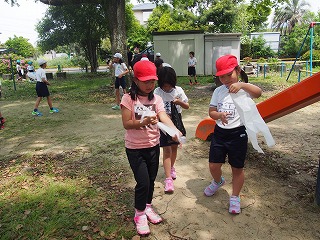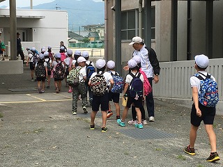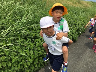 | ☆5月6日(土) ○お見知り遠足(5/2)がありました(帰還・下校編) ・お見知り遠足の帰りの様子をお知らせします。今日が最後です。 【2・5年生;公園のゴミ拾いの様子】 ・お世話になった公園をきれいにして学校へ帰ります。 【2・5年生;拾ったゴミは各自で持ち帰ります】 【1・6年生;みんな笑顔。遠足は楽しかったね】 【1・6年生;もうすぐ学校に着きます】 【1・6年生;疲れた1年生をおんぶ。やさしいですね】 【3・4年生;やっと学校に着きました】 【3・4年生;校長先生の出迎え。みんなとハイタッチ!】 【全校;体育館で校長先生の話】 ・「遠足が楽しかった人は手を挙げましょう」「はーい!」 ・みんなとたくさん遊び、大満足の遠足となりました。 【全校;登校斑になって下校しました】 ★天気も良く、みんなの思い出になるお見知り遠足ができました。 |