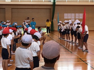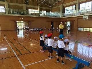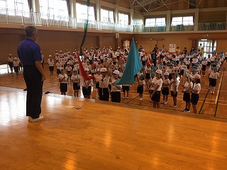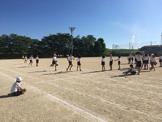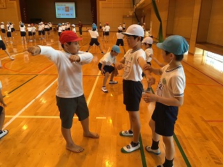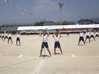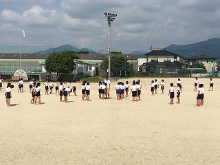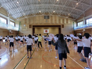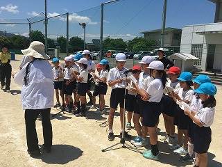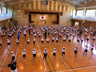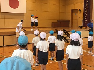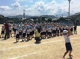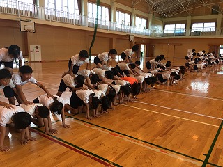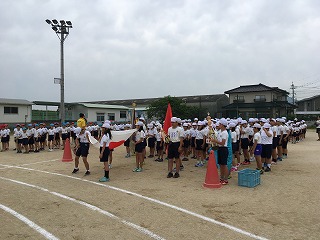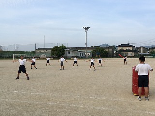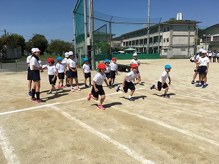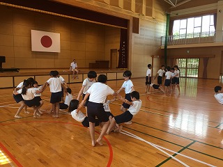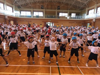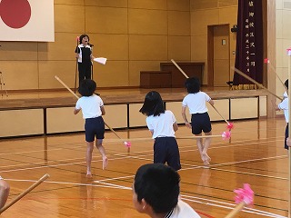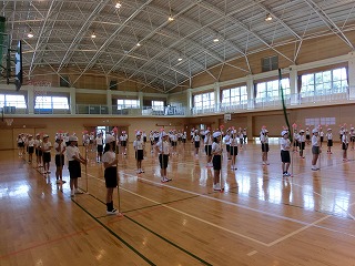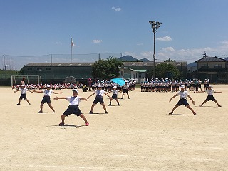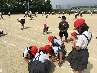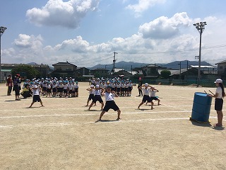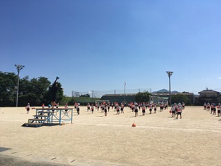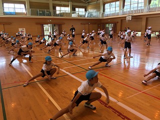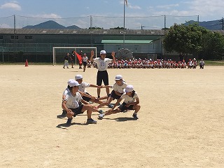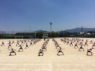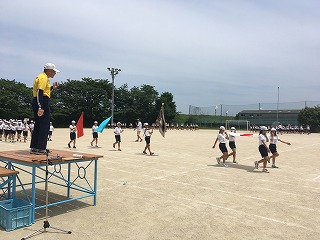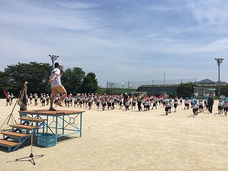 | ☆5月22日(月) ○暑い中、運動会練習をがんばりました ・今週末が運動会です。練習もいよいよ今週まで。暑さに負けず、がんばっています。 【2年生;全員リレーの練習】 【1年生;親子競技の練習】 ・運動会当日は、おうちの方とペアになって競技をします。 ・今日は、子どもたち同士で、1年生役とおうちの人役になって、やってみました。 【1,2年生;エアロビクスダンス】 ・みんなボールを持って、踊ります。 【全校練習;「植柳の盆踊」】 ・大きな円と小さな円になって踊ります。 ・保護者や地域の方も、ぜひ踊りに参加してください。 【全体練習;「口説き」を歌う子どもたち】 ・盆踊は、曲ではなく、「口説き」という歌に合わせて踊ります。 【「植柳の盆踊」;輪の中心の子どもたち】 ・「親子盆踊り教室」で習っている子どもたちは、一段と華麗に踊っていました。 【応援合戦の練習;赤団】 【応援合戦の練習;青団】 【5,6年生;「植柳の棒踊り」】 ・棒踊りの指導も、野﨑先生がしてくださいます。 【5,6年生;「組体操~未来~」の練習】 ・6人組で手をつなぎ、ぐるぐる回ります。 【5,6年生;動きのあるピラミッド】 ・曲に合わせて動きます。本番をお楽しみに! |