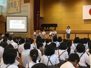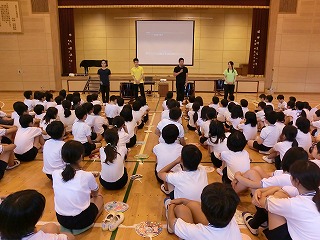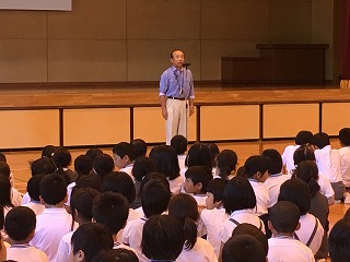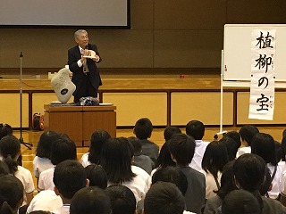 | ☆5月12日(金) ○運動会の全体練習が始まりました ・「雨」の予報で心配でしたが、初めての全体練習を運動場で行いました。 【入場待機場所にて】 ・「入場行進」「自分の立ち位置確認」「退場」の練習をしました。 【1年生の入場行進】 ・しっかりと手を振って行進できました。 ★来週も全体練習があります。がんばりましょう! ○全校集会がありました ・今年度から「全校集会」「児童集会」は、昼休みのあとにすることになりました。時間確保や集会の準備が十分にできるためです。 【校長先生の話;「植柳の宝」とは?】 ・校長先生が手にしているのは「しょのみご勾玉」という石です。植柳小の卒業生の橋本さんが寄贈してくださいました。 ・名古屋でデザイナーをされている50代の橋本さんは、今でも母校の植柳小のこと、植柳の子どもたちのことを大切に想ってくださり、プレゼントしてくださいました。 ・先日は、八代亜紀さんが来校されました。また、運動会の練習のため、多く校区の方が指導をしてくださっています。 ・「母校を想う心」…「植柳の宝」の一つです。 |