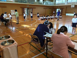 | ☆5月16日(火) ○内科検診がありました 【保健室;検診の順番を待つ2年生】 ・今日から木曜日まで内科検診がおこわなれます。 ○運動会の練習、がんばっています! 【1,2年生;玉入れ】 ・昨年度は震災の影響で、練習時間が確保できず、玉入れができませんでした。今年度は、赤組と青組で対戦します。 【5,6年生;組体操】 ・6年生がしている技を5年生が見ています。 ・一人技や二人技などの練習は終わり、ラストの大技に向けた練習に取り組んでいます。 ○3年生社会科「校区たんけんに行こう」③ ・校区の土地の使われ方を調べに、西方面(元町)へ行きました。これで校区の探検は終了。次の時間から、大きな地図に校区の様子をまとめます。 |
