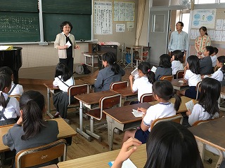 | ☆5月11日(木) ○芸術鑑賞会ワークショップがありました ・6月14日に芸術鑑賞会があります。その本番に向けた事前指導がありました。 ・名古屋の『志多ら(したら)』という和太鼓の団員の方が4名来校されました。 【体育館;ワークショップの様子】 【迫力ある和太鼓の演奏】 【4~6年生が参加】 ・当日は、和太鼓や笛の演奏に合わせて、子どもたちはうちわを持って踊ります。本番が楽しみですね。 ○八代亜紀さんが来校 【テレビのロケで植柳小を訪問された八代亜紀さん】 ・故郷を訪ねる番組制作のため、八代亜紀さんが来校されました。BS放送の番組だそうです。 【テレビカメラに夢中な2年生】 ・八代亜紀さんはいずかしの森や旧講堂周辺を散策されました。2年生が出迎え、本物の芸能人に出会えたことやテレビ局のカメラに映ることに大興奮でした。 ・詳しい放映日時が決まりましたら、HPでお知らせいたします。 ○3年生社会科「校区たんけんに行こう」 ・校区の土地の使われ方を調べに、南方面(大福寺)へ行きました。 【白地図を持って校外学習をする3年生】 【先生の説明を聞く3年生】 ・初めての実地学習でしたので、要所々で担任の先生が白地図への記入の仕方を説明しました。 【ばっちり調べました!】 ・来週は東コース、西コースへ探検に行きます。 ○八代地区特別支援学級「お見知りバス遠足」がありました ・植柳小、金剛小、高田小など12の小学校の児童150名ほどが参加し、天草の「シードーナツ水族館」へ行きました。 【シードーナツにて;植柳小あすなろ1組の児童】 【「アロマ体育館」にて名刺交換】 ・水族館見学の後は、お見知り集会があり、名刺交換やジャンケンゲームなどして、他校のお友達と仲良くなれました。 【大型バス4台で参加】 ・バス代や入場料は「手をつなぐ育成会」が寄付してくださっています。子どもたちのため、ありがとうございます。 ○応援団員の練習始まる! ・来週から始まる応援団の練習に向け、4時30分~5時30分まで話し合いや練習をしました。 【青団の応援団員】 ・団長の意気込み「今年も優勝5連覇めざします!」 【赤団の応援団員】 ・団長の意気込み「今年は赤団を優勝させるようにがんばります!」 ★お互いに全力を尽くし、青団、赤団のリーダーとして、運動会を盛り上げましょう!! |