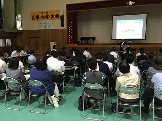 | ☆5月10日(水) ○歯科検診がありました 【体育館;2年生の様子】 ・学校医の宮井先生、高田先生が来られ、全校児童の歯を診てくださいました。 ○植柳の盆踊の「口説き」練習、始まる 【昼休みの音楽室;口説きの練習の様子】 ・植柳小の運動会の全校ダンスは「植柳の盆踊」です。伝統文化を大切にし、毎年引き継いでいます。 ・ダンスミュージックはなく、児童の口説き(歌)に合わせて踊ります。その第1回目の練習がありました。 ・練習に参加した児童は、30名ほど。野崎先生をはじめ地域の方が教えてくださいました。 ○植柳小あれこれ 【旧講堂より高く伸びた今年の筍】 ・筍の成長は本当に速いです。校舎の2階から写真を撮りました。 【元気に泳ぐ鯉のぼりと元気に遊ぶ子どもたち】 【一輪車の片付けをする6年生】 ・「さようなら!」と言って、一輪車小屋へ駆けていく6年生。片付けてなかった一輪車が目にとまり、気になったそうです。そのままにせず、気づき、考え、行動できて立派です。2台を元の場所にかけてくれました。ありがとう。 【三中体育館;三中校区合同研修会】 ・植柳小職員20名、麦島小26名、三中24名の70名が参加し、小中一貫・連携教育に係わる研修会を行いました。 ・本校の久保校長先生が「コミュニティ・スクールについて」の演題で講話をしました。その後は、「研修」「体つくり」「道徳教育」など8つの部会に分かれて、今年度の取組について話し合いをしました。 |