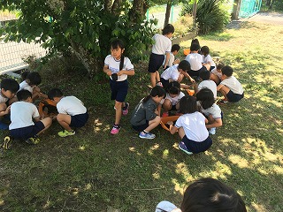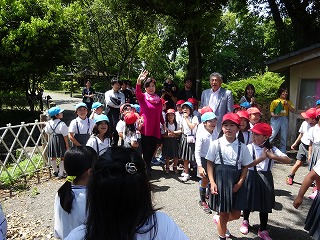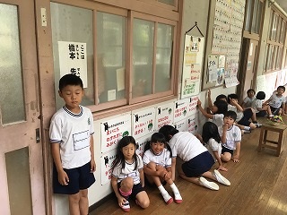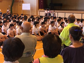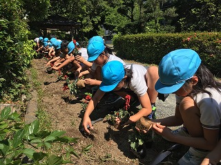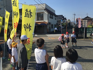 | ☆5月19日(金) ○登下校見守りの皆様「お世話になります集会」がありました ・植柳小児童の登下校を見守ってくださる方々をお招きした集会をしました。 【体育館;登下校の見守りをしてくださる方々】 ・朝早くから30名ほどの方が来校されました。 【SSP、防犯協会、交通安全協会の代表の方のお話】 ・子どもたちへ2つのお願い ①「大きな声であいさつをしましょう。」 ②「ありがとうの気持をもちましょう。」 【児童代表あいさつ;2年生】 ・「いつもありがとうございます。これからも交通安全に気をつけて登校します。」 ★登校だけでなく、下校の見守りもされる小学校は少ないそうです。見守りの皆様のおかげで、安心して登下校ができます。今年度もお世話になります。 ○昼休みの1年生の遊び ・子どもたちは休み時間が大好きです。1年生の遊びがかわいかったので、写真を撮りました。 【児童玄関前の大きな木】 ・「先生、すずしいでーす!」と声をかけてくれました。枝に分かれ目があって登りやすく、1m位の高さで安全です。 【中庭の岩石園】 ・石をどけると、小さなカニがいます。それを捕まえていました。 ・ジューシーパックで作った入れ物に水を入れ、カニを入れていました。 ○植柳小あれこれカメラ 【3,4年生運動会の練習】 ・運動場で「よさこいソーラン」の練習をしました。本番に向けてがんばりました。 【3年生社会科;校区地図が完成!】 ・校区探検を終え、大きな白地図にまとめました。 ・「北がわには、くま川がながれている」「西がわには、神社や寺が多い」など、たくさんの気づきがありました。 【4年生;花壇の花植え】 ・サルビアを植えました。旧講堂の前の花壇です。 |