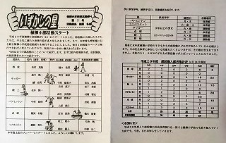 | ☆5月14日(日) ○「部活動便り」を発行しました→植柳小部活便り「いずかしの星」1号.pdf 【植柳小部活便り;「いずかしの星」】 ・昨年度から引き続き、毎月1回程度のペースで発行します。 ・部活に入部している児童に配付します。 【昨年度のサッカー部の試合の様子】 ・部活の紹介や試合の結果などをお知らせします。 ・今年度の部活動入部者(3~6年生) 野球部(6名)、サッカー部(22名)、陸上部(16名)、バドミントン部(28名)、卓球部(10名)、ミニバスケットボール部(10名) |