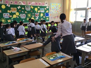 | ☆4月11日(火) ○入学式がありました ・新一年生41名を迎え、植柳小学校の入学式を行いました。 【一年生の入場】 ・手をつないで、笑顔で入場。 【入学式の様子】 ・1組20名、2組21名です。 【校長先生の話】 ・「①あいさつをしましょう。②しっかり話を聞きましょう。③くつのかかとをそろえましょう。」 【児童代表お迎えの言葉】 ・「植柳小学校には、たくさんの生き物がいます。カニとりは楽しいですよ。」 ・「きまりを守って、楽しくすごしましょう。」 【1年1組教室の様子】 【1年2組教室の様子】 ★今日から植柳小学校の児童です。明日からは、自分の足で歩いて登校します。安全に気をつけて、来てくださいね。いっしょに頑張っていきましょう! ○6年生、ありがとう! ・準備、入学式、片付けまで、学校のために一生懸命動いてくれました。 【入学式の準備をする6年生;体育館】 【1年生の教室づくりをする6年生】 【入学式に参加した6年生】 ・朝早くから、準備をしてくれてありがとう。入学式の態度も立派でした。片付けも進んでしてくれて、助かりました。 ・これからも、植柳小の最上級生としての活躍を期待しています。 |