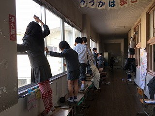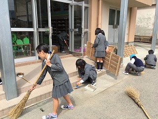【玄関掃除の3年生】