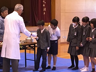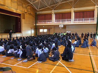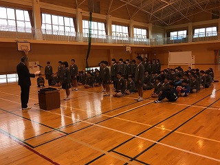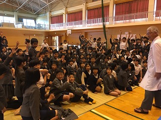 ・今日は最後でしたので、3~6年生対象に体育館で、特別授業をしてくださいました。