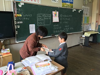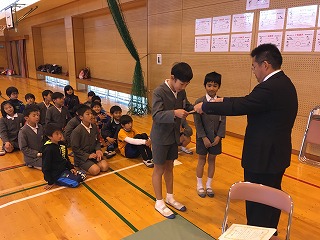 ・一年間の頑張りを記した修了証を校長先生からいただきました。