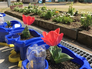 ○職員室の横の花だん 2つとも完成!