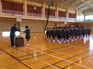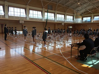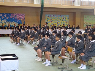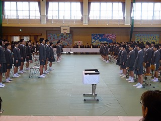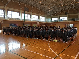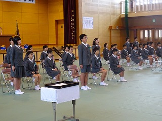 ・1年生から順に学年ごと起立し、3学期の頑張りやお褒めの言葉をいただきました。