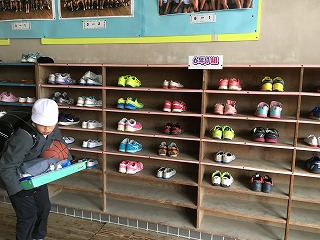 ・靴箱には「仕切り」がありません。隣の友だちとの間隔もきれいに取っています。