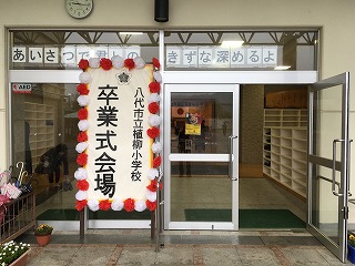 【卒業式会場;5年生が準備しました】