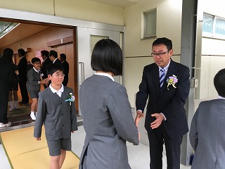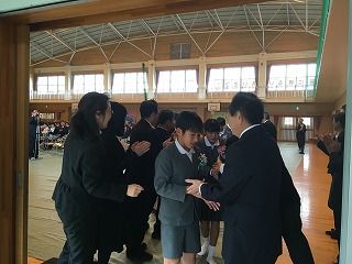 【卒業生退場①;出口で先生方とお別れ】