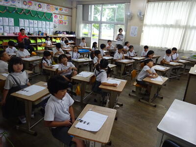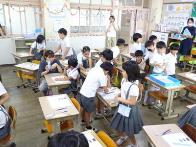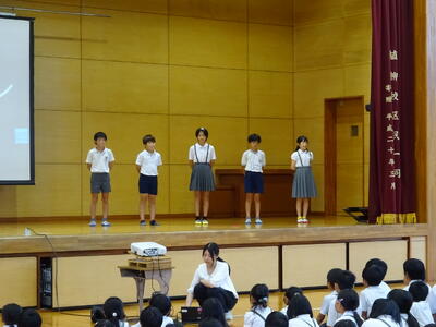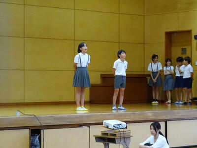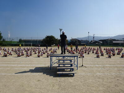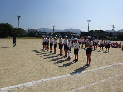 開会式と閉会式での動きの確認と、朝礼台に立つ子供たちの練習をしました。