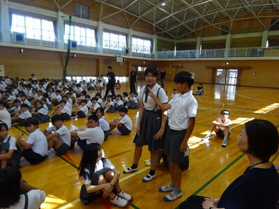 4年生児童から、「団長に負けないくらい大きな声を出して