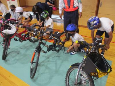 自分の自転車を持ってきて、自転車を乗る前の点検の仕方や