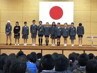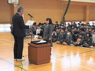 | ☆平成30年2月17日(土) ・2月の児童集会は、運営委員会からのお知らせと、表彰がありました。 ★運営委員会のお知らせ 【運営委員会のメンバー】 ・「植柳小のいいところ!」「なおすともっとよくなるところ」を紹介する寸劇をしました。 【①気持ちのいいあいさつができます!】 【②男女仲良く遊ぶ、仲のいい植柳小!】 【なおすといいところ】 ・「学校のルールを守る、廊下を走らない」です。全校でがんばりましょう! ★表彰 【卓球部の表彰】 【千丁いぐさマラソン大会の表彰】 【読書感想画展の表彰】 【工作展の表彰】 【サッカー部の表彰】 ★植柳小の子どもたちの活躍がたくさんありました。 |
