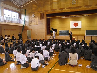 | ☆4月8日(土) ○始業式、入学式の日程です ・いよいよ来週10日(月)から、平成29年度の学校生活が始まります。 ・始業式と入学式の日程をお知らせします。 ★始業式 ・ 7:30~ 8:15までに登校 ・ 8:50~ 9:50 就任式、始業式 ・10:00~10:40 学活 ・10:50~11:30 学活 ・11:40~12:00 大掃除 ・12:10 下校 ※6年生はお弁当食べて、午後入学式準備 ・12:50~14:50 入学式準備 ・15:00 6年生下校 【H28年度始業式】 ★入学式 ・ 9:20~9:40 保護者受付 ※保護者受付→児童玄関から入り、1年廊下にて受付 ※靴は児童用の靴箱にお入れください。 ※スリッパをご持参ください。 ※保護者の方は、1年教室に道具を置き、体育館へ移動 ・ 9:20~9:45 来賓受付 ※来賓受付→職員玄関から入り、校長室へ ・ 9:40~ 6年生入場 ・ 9:55~ 新入生入場 ・10:00~10:25 入学式 ・10:30~ 退場 ・10:45~ 新入生学級活動(各教室で) ・11:20~ 新入生写真撮影(体育館にて) ※新入生と保護者、担任、校長で全体写真を撮ります。 ・11:40 6年生下校予定 【H27年度入学式会場;植柳小体育館】 |
