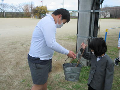 運動場のゴミ拾いをしてくれました。