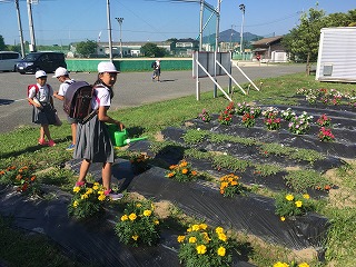 | ☆平成30年6月1日(金) 〇全校集会がありました~命と仲間を大切に~ ・童謡「しゃぼん玉」、「チューリップ」の曲が流れ、校長先生が話をされました。 【校長先生の話】 ・童謡に込められた思いを紹介されました。 ・「『しゃぼん玉』は幼い子どもの命がなくなった悲しさ、命の大切さを歌っています。『チューリップ』は、この世に色々な人がいてもいいじゃないか、そういうことを歌っているのです。」 ・「6月は、いじめのない学級にしてほしいと思います。命と仲間を大切にしましょう。」 〇スポーツテスト、最終日でした ・今日は、1年生と6年生が実施しました。 【50m走】 ・1年生にとって、初めてのスポーツテストでした。 【ソフトボール投げ】 ・「えいっ!」遠くまで投げられたかな? 【長座体前屈】 ・体の柔軟性を測るテストです。子供たちは体が柔らかいです。 ★記録は個人カードに記入し、業者さんに集計してもらいます。結果をお知らせするプリントは、後日配布します。 〇植柳小あれこれカメラ 【自転車大会の練習】 ・朝の練習風景です。遅乗り(遅く自転車を進める練習)をしていました。 ・南門の横断歩道。教頭先生と防犯協会の方が交通指導をしていました。 【南門近くの掲示板】 ・6月の行事予定と伝統文化教育の紹介。 【4年生の学級花壇】 ・下校時、子供たちが水やり。きれいに花が咲いていました。 【教室から見える築山】(6/1撮影) ・栽柳園も、夏の風景になりました。熱中症には十分気をつけて過ごされてください。 |