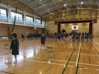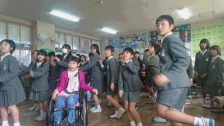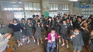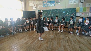 | ☆平成30年3月15日(木) 〇卒業式の総練習がありました ・卒業式の総練習を5,6校時に体育館で行いました。 【卒業生入場】 ・先生たちも全員参加しました。 【卒業証書授与】 ・一人一人の名前を呼び、本番同様に証書を渡しました。 【呼びかけ】 ・気持ちがこもった素晴らしい呼びかけでした。 【6年生♪「すてきな自分と出会う道」】 ・伴奏は6年の山本さんです。 【5,6年生♪「さようなら」】 ・1番を6年生、2番を5年生、3番は5,6年生一緒に歌います。 【5,6年生♪「さようなら」】 ・伴奏は6年の前田さんです。 【卒業式退場】 ・運動会の組体操で流れた思い出の曲で退場します。 ★入場から退場まで、本番どおりに行いました。児童の態度も歌も呼びかけも、バッチリでした。来週の本番も頑張りましょう。 〇まきさんと居住地交流をしました(5年生) ・植柳校区に住んでいるまきさんと3回目の交流会を行いました。 【5年生教室;みんなでゲーム】 ・ALTのジョー先生とキーワードゲームやミッシングゲームをしました。 【フルーツバスケット】 ・手作りカードのフルーツバスケットをしました 【フルーツバスケット】 ・車椅子のまきさんも鬼になりました。 【みんなで『恋ダンス』】 ・まきさんが好きな恋ダンスを踊りました。 【みんなノリノリです!】 ・ポーズが決まっていますね。笑顔もすてきです。 【またね!まきさん】 ・今回もまきさんと楽しく過ごすことができました。次回も楽しみですね。6年生になって、また一緒に遊びましょう! |